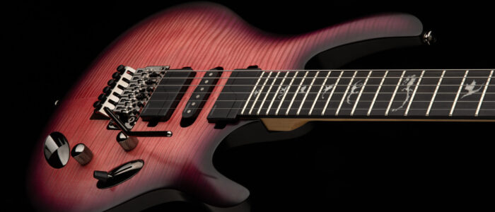 La PRS SE Chleo cuenta con tapa de arce y fondo de caoba, con mástil de arce y diapasón de ébano. El cuerpo presenta un tallado esculpido que le permite ser muy fino y ligero en general, para que puedas tocar durante más tiempo y con más energía. La forma y la unión del mástil fueron diseñadas especialmente para ser cómodas y rápidas. El mástil es muy fino de adelante hacia atrás, con una superficie de toque ligeramente más alta y un radio de diapasón de 20″, y las varillas de resistencia de fibra de carbono de alto módulo aseguran un mástil fuerte que promueve el sustain. El diapasón presenta incrustaciones “Eclipse Dragon”, y el característico scoop de PRS también se ha modificado para un acceso óptimo a los trastes superiores. Todo esto, sumado a un trémolo de bloqueo Floyd Rose, te permite tocar con intensidad sin sacrificar nada.